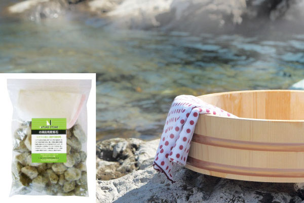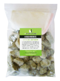 浴槽に約1.5kを布製アミに入れておくと温泉効果があり、遠赤外線の作用で体の芯まで温かくなり細胞の新陳代謝が促進されます。またミネラル成分が溶出しお湯を弱アルカリにして水質が中和されお肌に優しく作用します。脱臭浄化作用により、使用後の臭いがなく浴槽の汚れも少なくなります。